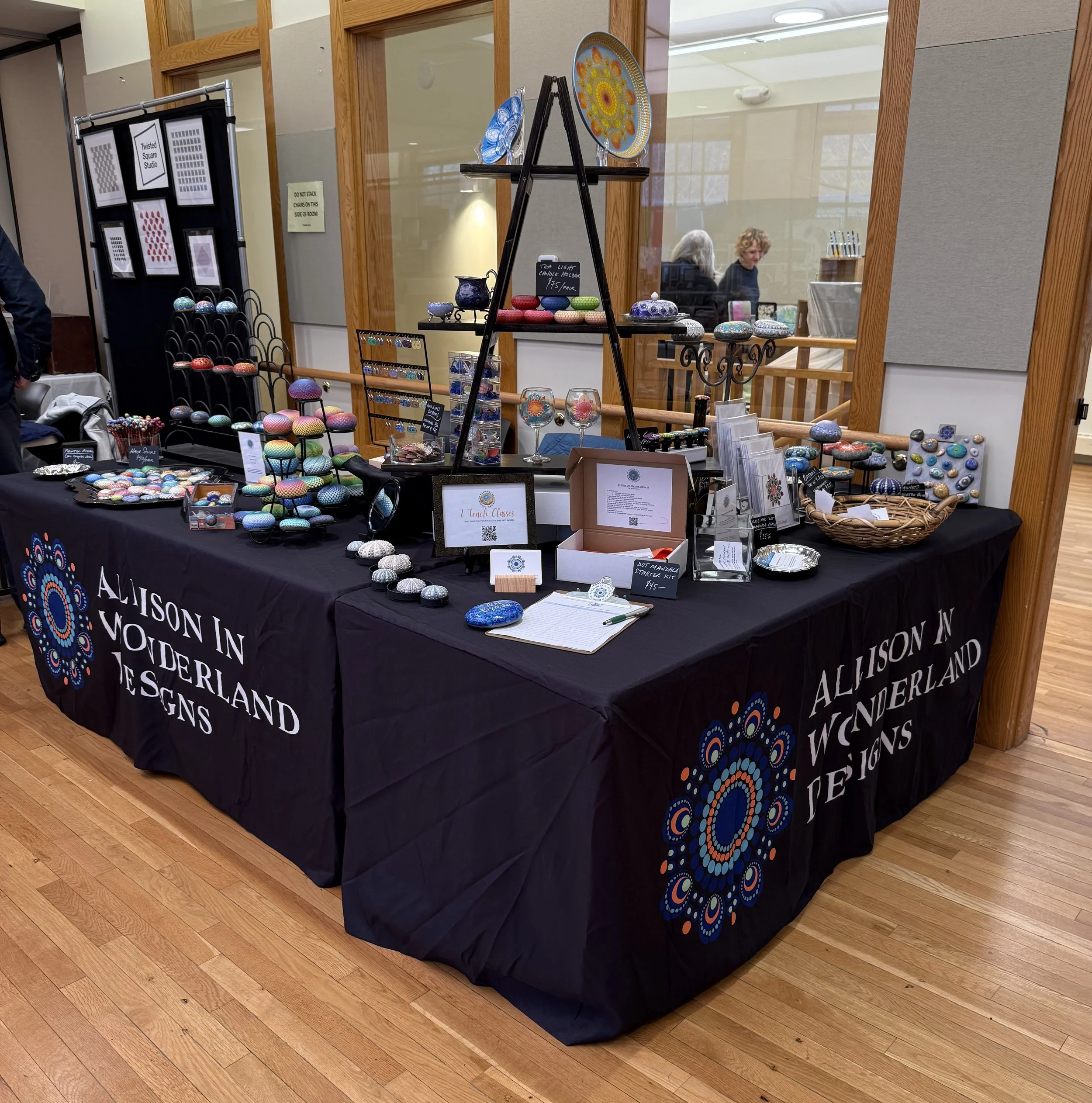 Owner and artist, Allison, working the booth with the support of her friend/cousin Rosanne.